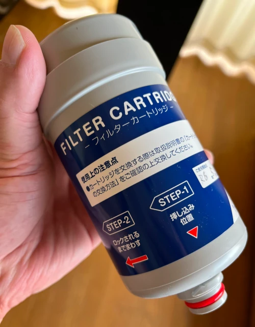 浄水フィルターの交換は給水タンクの横にある差し込み口に押し込んで回すだけなのでセットは簡単に行えます。交換時もマニュアルなど見ることなく簡単に交換できると思います。